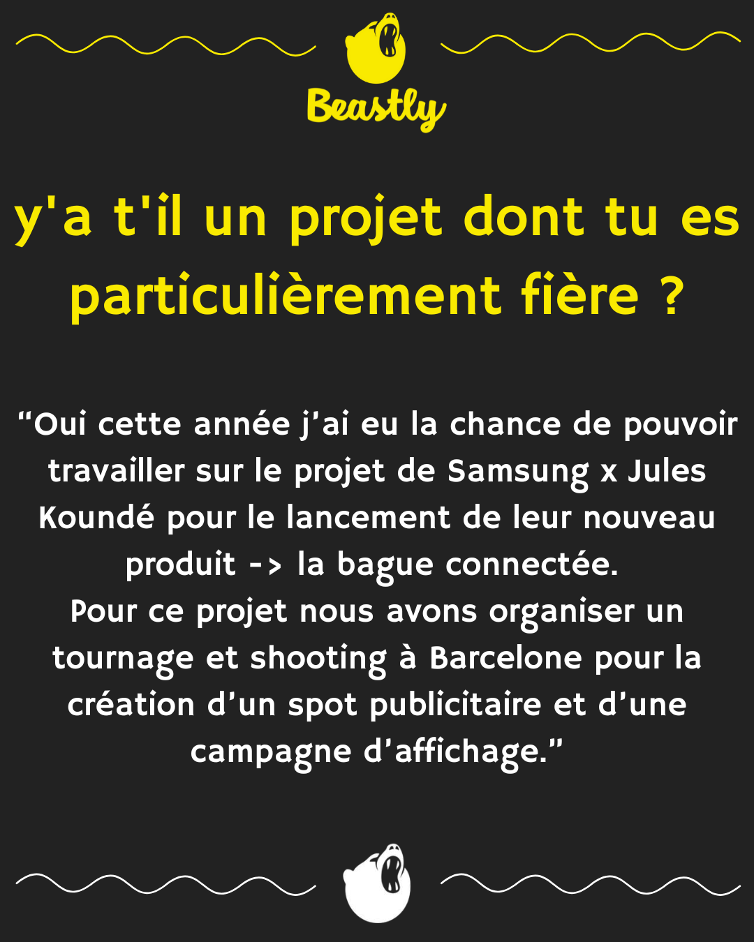 y'a t'il un projet dont tu es particulièrement fière ?