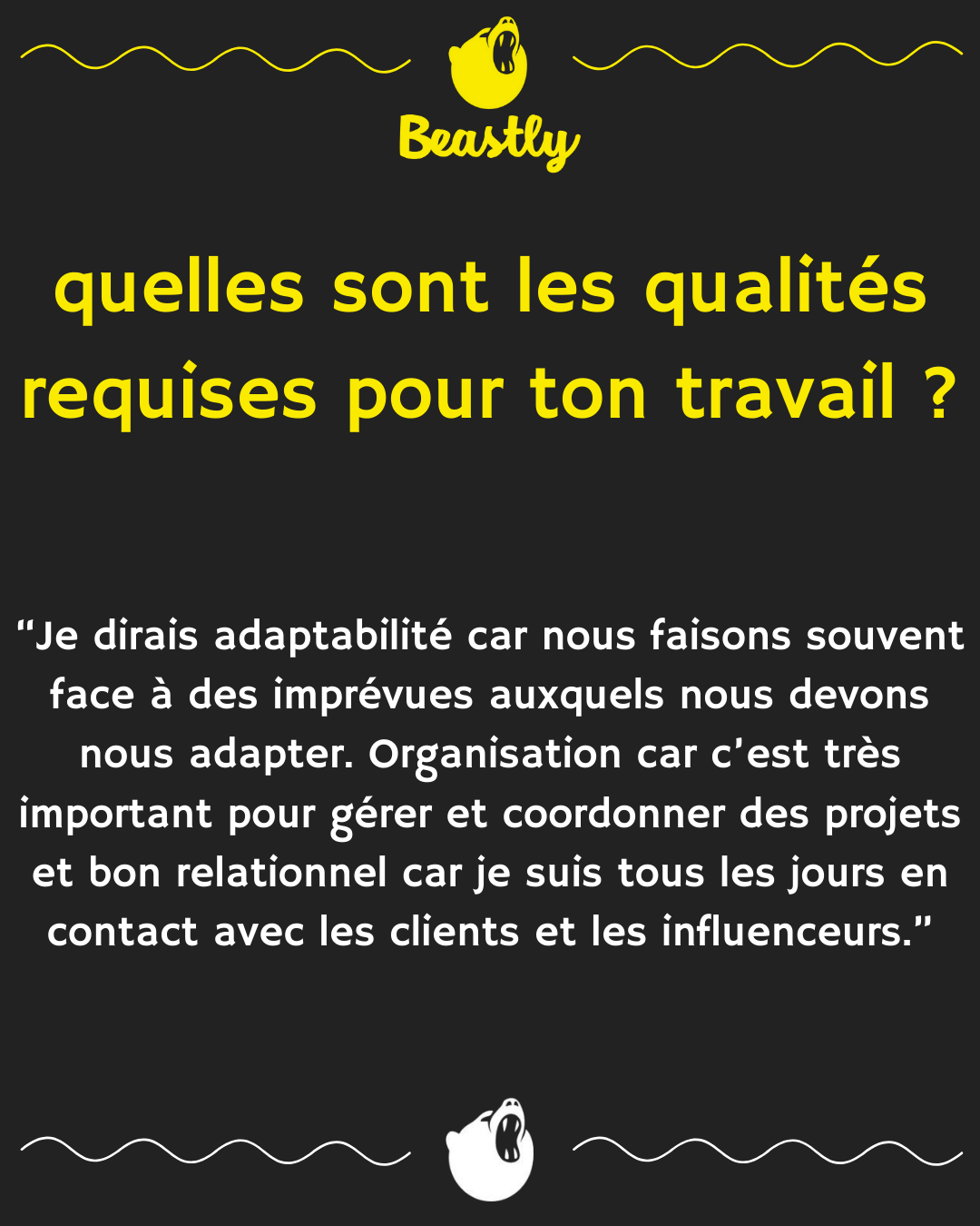 quelles sont les qualités requises pour ton travail ?